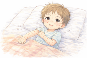 - 突発性発疹:発熱を認め、解熱後に発疹を認めます。